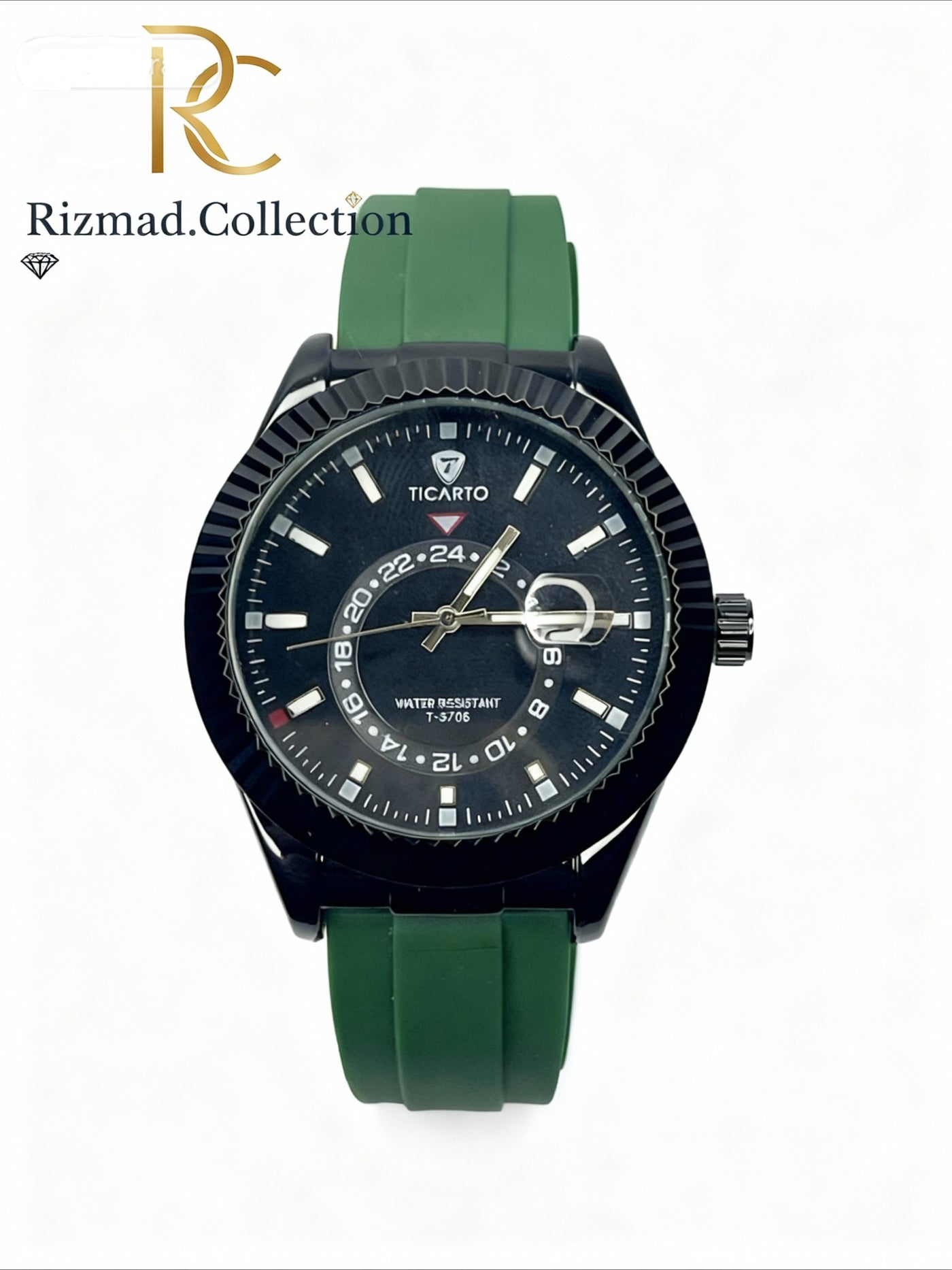 Ticarto Men’s Analog Watch – Green Silicone Strap | Free Box & Packaging | Rizmad Collection